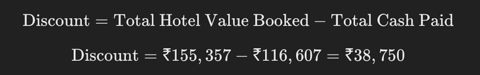 The discount is the difference between the total hotel value booked and the total cash paid: